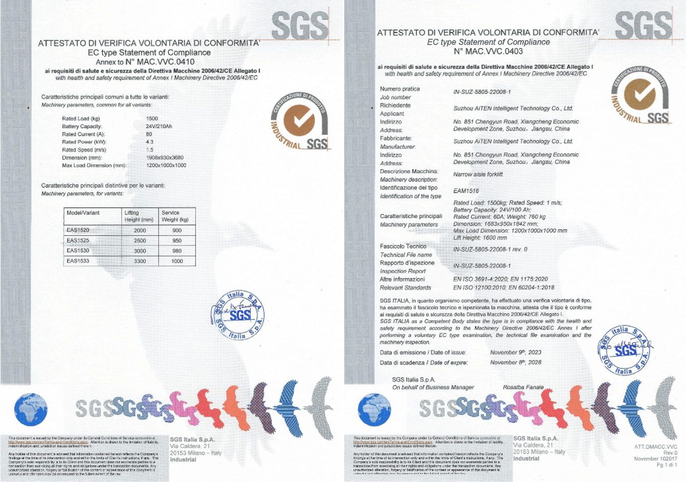 3. CE 标志(欧盟): 确保符合机械指令,强调对繁忙仓库等动态环境的风险评估,在这些环境中,叉车与行人和手动设备相互作用。为满足欧洲市场的法规要求,710公海寰宇产品经过严格审核,为包括 MP10、AM1516、AE15、AS15 和其他产品在内的 AGV 产品获得了欧盟 CE 证书。